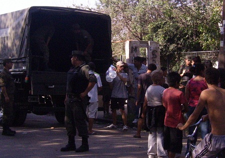 Bajaron los pack de agua. Efectivos de Gendarmería aseguran que los grandes botellones ingresen a la unidad sanitaria La Victoria en Moreno Sur. El sábado de gloria tenía un componente de rabia contenida, de abusos comunes y mensajes sociales. Oscar Retuerto, dirigente social e integrante de (…)