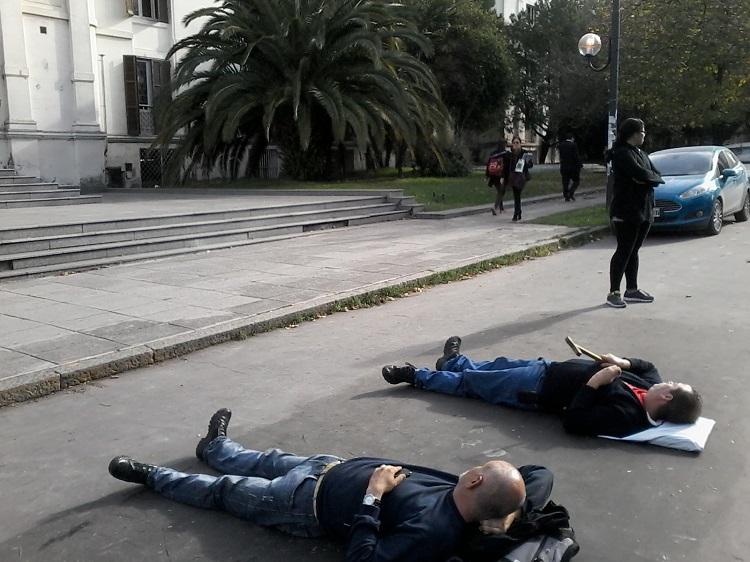 Frente al edificio del Ministerio de Seguridad de la Provincia de Buenos Aires, dos efectivos de la Bonaerense se acostaron en la vía pública para exigir el retiro. Aducen que, después de más de 25 años de servicios y por las lesiones sufridas, les corresponde ese derecho. Sucedió ayer en la (…)