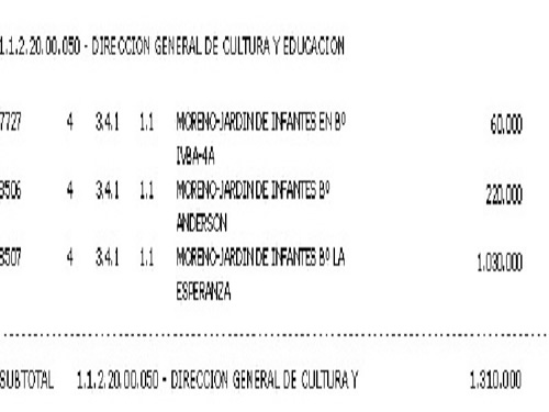 De esta forma, escrita, presupuestada y sin datos de ejecución de los proyectos, la Provincia de Buenos Aires, la administración Scioli, dispuso para la intendencia de Moreno encabezada por Mariano West, $1.310.000 para la educación. No hay presupuesto para las escuelas del tornado, no están registradas, no figuran.