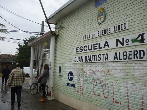 El Secretario de Seguridad del municipio, Héctor Lafalcé, se ubicó desde las 7 de la mañana en la Escuela Nº 3 (Camili y Bartolomé Mitre). Una hora más tarde, los primeros votantes aguardaron en la vereda sin ser castigados por la lluvia. Más de 45 minutos de retraso, con mesas reorganizándose en la disposición de las boletas: