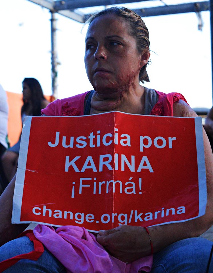 En el marco del Día Internacional de Lucha Contra la Violencia hacia las Mujeres se realizó ayer por la tarde una actividad en la Plaza San Martín. Hubo radio abierta, exposiciones artísticas y un señalamiento de las víctimas de femicidio en Moreno. La convocatoria surgió del colectivo Mujeres Organizadas del Oeste. En ese marco, Desalambrar obtuvo el testimonio de Karina Abregú, una sobreviviente del horror machista. Con el 50 por ciento de su cuerpo quemado por su ex pareja Gustavo Albornoz, exige la detención del victimario: "Mi caso es una situación de terrible vulnerabilidad porque se pidió la detención de mi ex marido, no tenemos la custodia permanente que nos designaron tanto en Merlo como en Malvinas Argentinas".