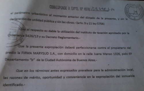 Primero tengo que decir que no se dio la discusión en comisión para conocer cuáles eran los objetivos de eso porque puede haber otras salidas, no es la única. Segundo, ¿es facultad de la municipalidad una expropiación o eso le corresponde la Provincia de Buenos Aires?...