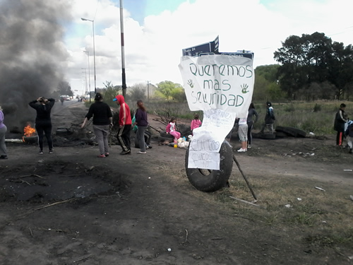 La solicitud concreta de los manifestantes quedó en la instalación de un Destacamento de Gendarmería en el barrio que pertenece al Plan Federal de Viviendas. "Estamos viviendo una inseguridad terrible. Los docentes del colegio Nº 81 son amenazados, robados en reiteradas oportunidades, golpeados a plena luz del día. Los vecinos también pasamos por esta misma situación, a mí en lo particular me pusieron un revolver en la cabeza a las cuatro de la tarde", denuncia Paola, una vecina que ahonda el tema a partir de la respuesta del comisario de la Primera de Moreno, quien habría dicho en una reunión que "tienen que reclamar en el IDUAR para saber a quién entregan las casas. También vino el concejal Damián Contreras y no pudo dar ninguna respuesta. Por eso decimos juntar firmas y movilizarnos al Concejo Deliberante".